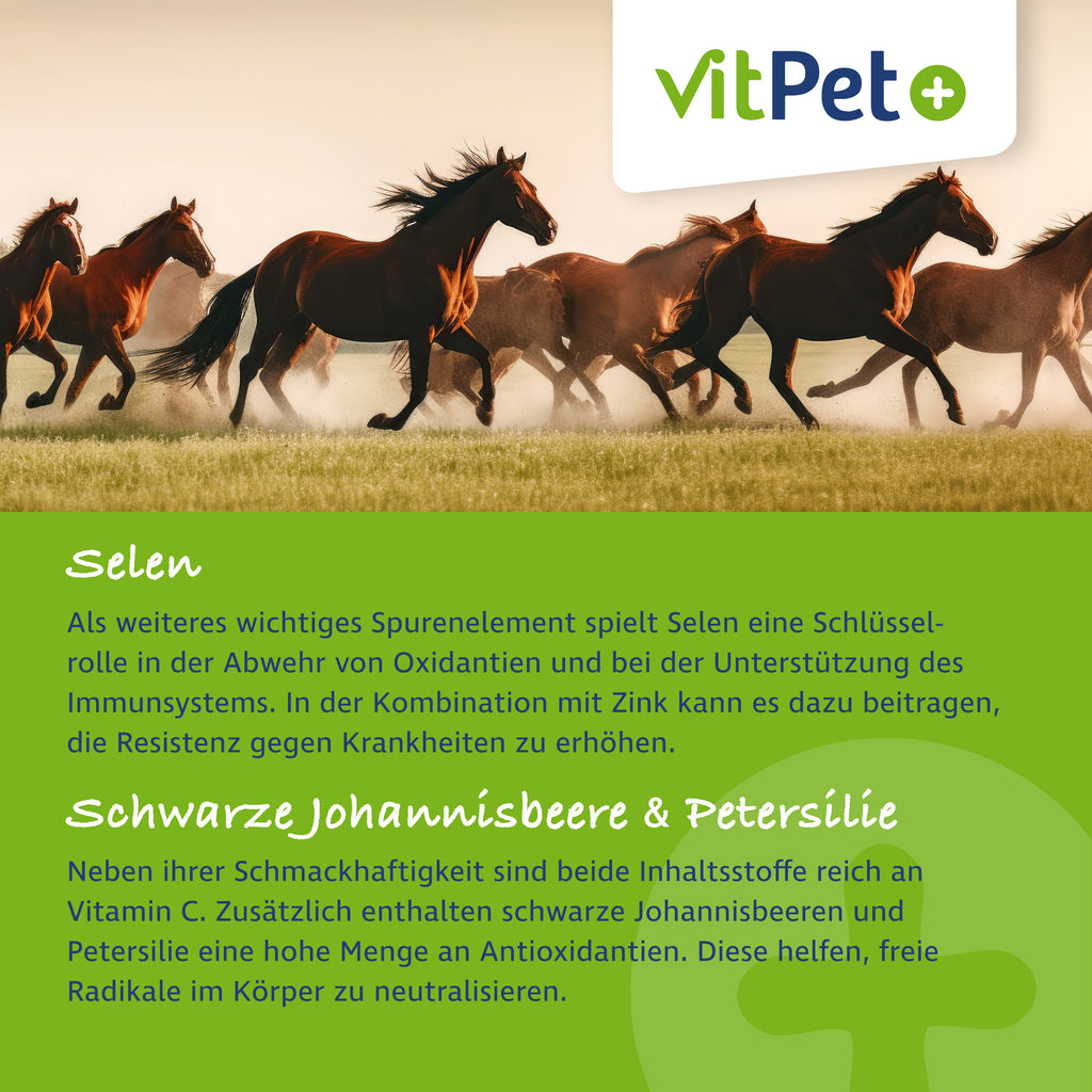 - IHR PLUS FÜR HAUT, FELL UND IMMUNSYSTEM: Die ausgewogene Versorgung mit dem Vitalstoff Zink aktiviert den Stoffwechsel und stärkt das Immunsystem. Es ist essenziell für die Gesundheit von Haut, Fell und Hufen.